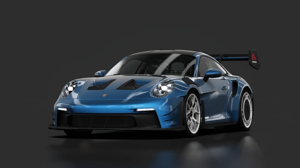 Son moteur reste le mythique flat-six 4.0 atmosphérique, développant 525 chevaux et capable de grimper jusqu’à 9 000 tr/min, mais c’est sur l’aérodynamique que la transformation est spectaculaire. Avec un kit complet signé Manthey, la voiture génère plus de 1 000 kg d’appui à haute vitesse, grâce à un aileron arrière retravaillé, un diffuseur élargi, des éléments en fibre de carbone, des disques aérodynamiques sur les roues et des détails empruntés à l’endurance. Résultat : une stabilité incroyable et une précision chirurgicale dans les courbes rapides.